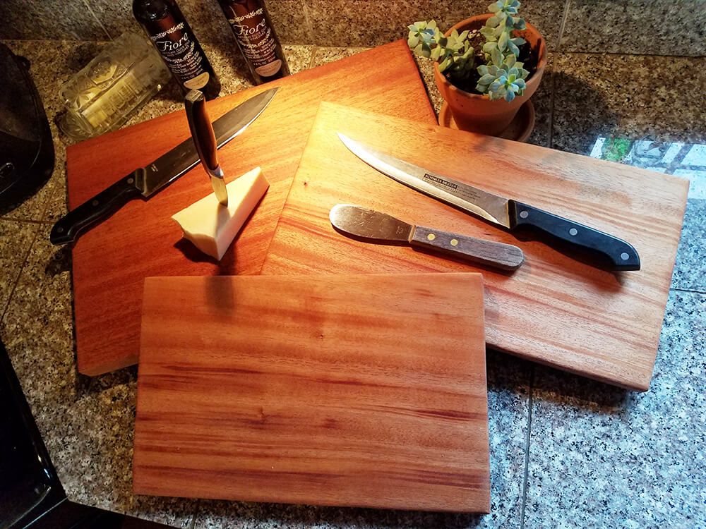 We can make various sizes of serving boards crafted from a variety of wood species. Our cutting and serving boards are oiled with food grade mineral oil or can be shipped unfinished for you to finish as you desire.